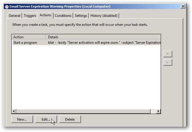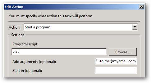 Rul til slutningen under linjen Tilføj argumenter, og opdater værdien efter parameteren -to til den e-mail-adresse, som advarslerne skal sendes til. Derudover, hvis du vil redigere meddelelsens brødtekst og / eller emne for den resulterende e-mail, kan du også gøre det her.