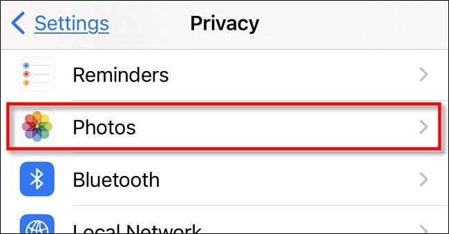 I "Privacy", rul ned ad listen og tryk på "Fotos."