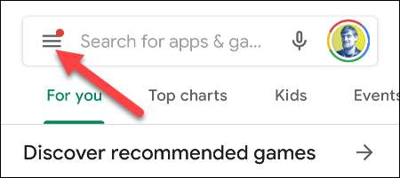 Først skal du åbne Play Store-appen på din Android-telefon eller tablet. Tryk på Hamburger-menuen øverst til venstre for at åbne overløbsmenuen.