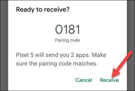 En parringskode vises på din enhed og deres. Lad dem vide, hvad koden er, og at de kan trykke på "Modtag", hvis den matcher.