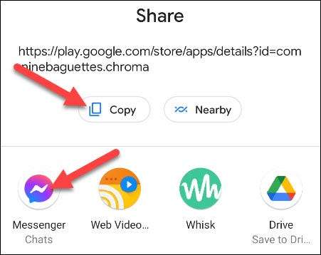 Android's native share menu åbnes. Du kan enten "kopiere" linket og indsætte det i en hvilken som helst messaging eller social media app, du vil have, eller vælg en app til direkte at dele den med.