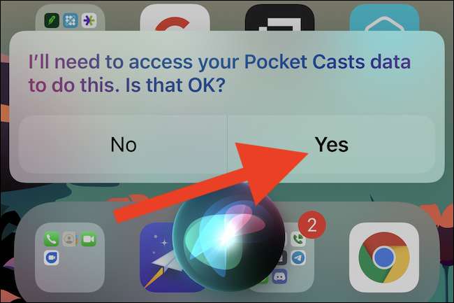 I nogle tilfælde kan Siri bede om din tilladelse til at få adgang til en apps data, før den kan kontrollere afspilningen. Giv voice Assistant-tilladelsen ved at trykke på knappen "Ja" fra pop op-beskeden.