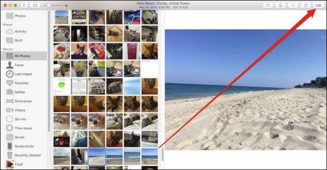 Der er to måder at aktivere og deaktivere udvidelser i Fotos. Metode nummer et er at gøre det fra Photos-appen. Find først et foto, du vil redigere, klik på det og derefter knappen "Rediger" i applikationens øverste højre hjørne.