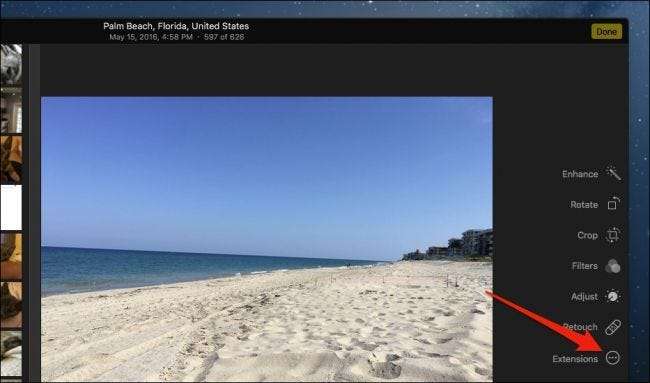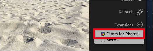 Når du er vendt tilbage til Fotos, skal du klikke på knappen "Udvidelser" igen og nu vælge den, du vil bruge, som i dette tilfælde vil være den eneste, vi kan bruge: Filtre.