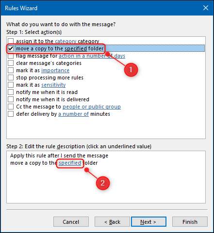 Vælg "Flyt en kopi til den angivne mappe" og vælg den understregede tekst for at vælge mappen.