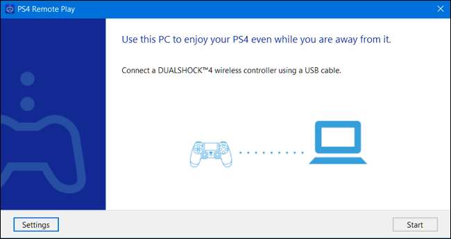 Start PS4 Remote Play-applikationen, når den er installeret, og du bliver bedt om at slutte en PlayStation 4 DualShock 4-controller til din computer via et USB-kabel. Desværre understøtter Sony kun officielt controllere, der er tilsluttet via et USB-kabel, på trods af at du kan par PS4-controllere med din computer via Bluetooth . Du kan bruge det samme USB-kabel, som du bruger til at forbinde din DualShock 4-controller til din PlayStation 4 til opladning.