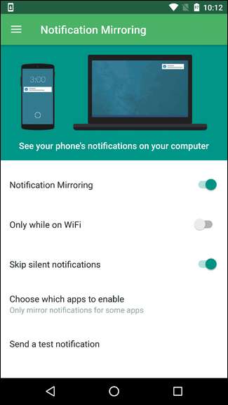 Bare for at sikre, at alt fungerer korrekt, skal du gå videre og springe tilbage til indstillingerne for Notification Mirroring på telefonen. Den nederste mulighed skal lyde "Send en testmeddelelse." Fortsæt og tryk på det.