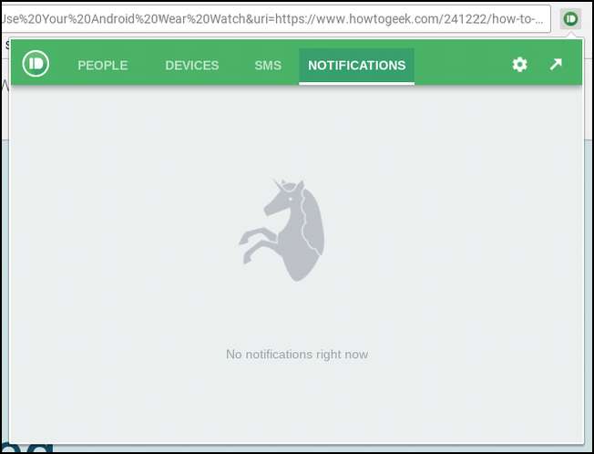 Når alt er i gang, kan du få adgang til dine ikke-afviste meddelelser i Pushbullet-udvidelsen ved at klikke på fanen "Meddelelser".