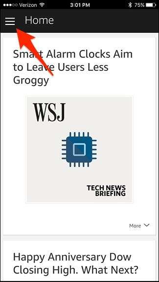 For at gøre dette skal du starte med at åbne Alexa-appen på din telefon og trykke på ikonet for sidebjælke øverst til venstre på skærmen.