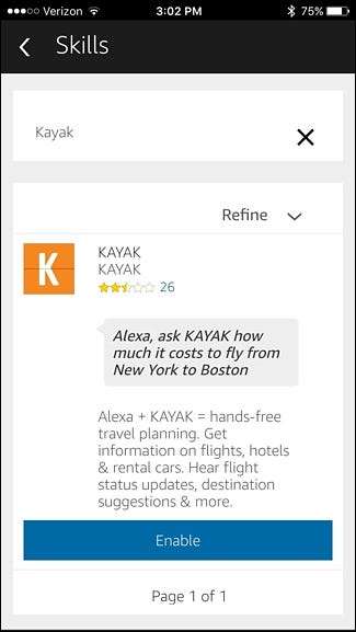 Når du har installeret færdighederne, er du på vej til løbene og kan bede Alexa om at søge efter fly, hoteller og endda lejebiler. Du skal dog starte hver stemmekommando med "Alexa, spørg kajak ...", så husk det, når du foretager dine søgninger.