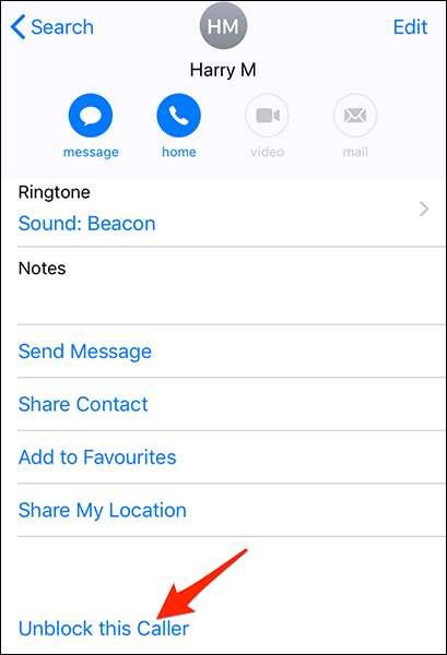 Din valgte kontaktoplysninger åbnes. Her skal du rulle ned på siden og trykke på "Fjern blokering af denne opkald."