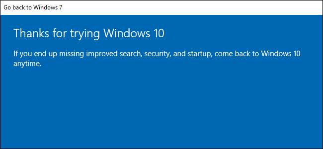 Dernæst kører det dig gennem et par skærme, hvor det spørger, om du vil prøve at opdatere Windows 10 i stedet (for at se om det gør noget bedre) og derefter minde dig om, at hvis du har en adgangskode, skal du huske det eller deaktiver det, mens du kan. Når du kommer til det sidste skærmbillede, skal du klikke på knappen “Gå tilbage til Windows 7 (eller 8.1)” for at få det til at ske.
