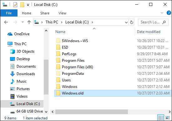 Nedgradering er mulig, fordi Windows 10 gemmer din gamle Windows-installation i en mappe med navnet "C: \ Windows.old" på din pc. Du kan se denne mappe i File Explorer, selvom du ikke skal forsøge at slette den herfra. Du kan også gennemse mappen Windows.old og gendan filer fra den .