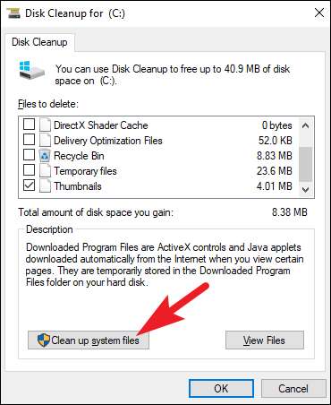 Klik på knappen "Ryd systemfiler" i vinduet Diskoprydning.