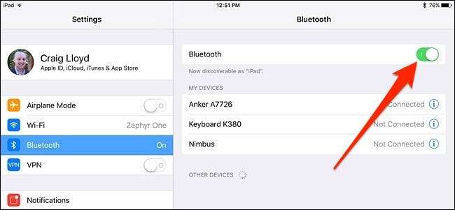 Parringsprocessen er den samme som den er til andre Bluetooth-perifere enheder . Start med at åbne appen Indstillinger på din iPad eller iPhone, og vælg "Bluetooth".