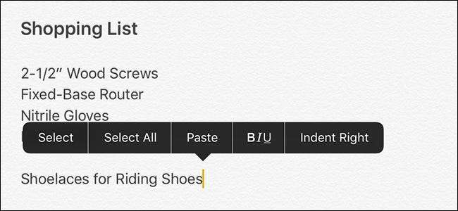 Når du åbner et dokument eller en note på din iOS-enhed, skal du bare trykke på et tekstfelt med fingeren for at placere markøren der og begynde at skrive. Da der ikke er musestøtte, skal du stadig navigere grænsefladen med din finger som du normalt ville.