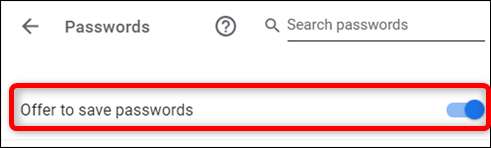 Skift kontakten mærket "Tilbud om at gemme adgangskoder" til tændt position (hvis den ikke allerede er).