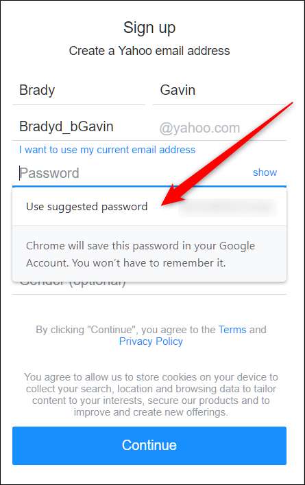 Klik på "Brug foreslået adgangskode", når prompten vises denne gang.