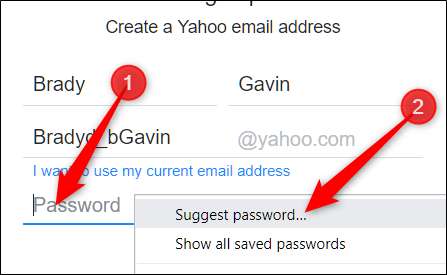 Hvis du ikke kan se prompten, skal du højreklikke i adgangskodefeltet og derefter klikke på "Foreslå adgangskode."