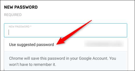 Hvis prompten ikke vises, skal du højreklikke på adgangskodefeltet og derefter klikke på "Foreslå adgangskode." Dette vil tvinge pop op-vinduet til at vises under feltet med et nyt, stærkt forslag til adgangskode.