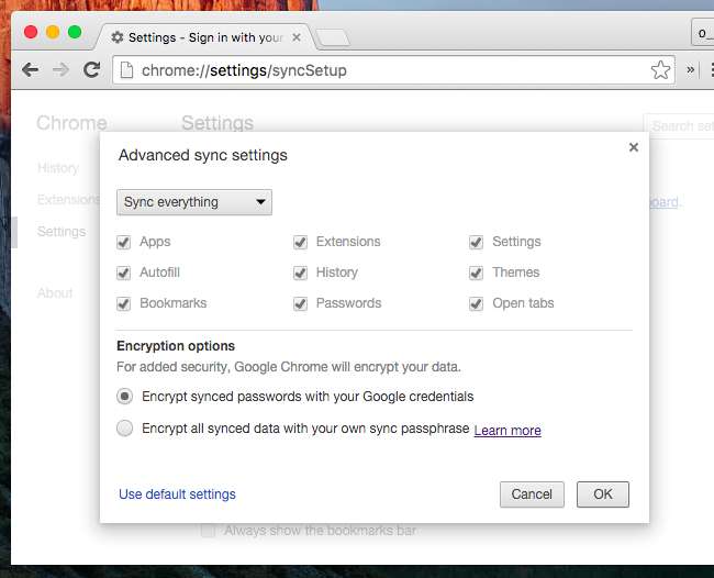 (Bemærk, at hvis du vælger at kryptere dine adgangskoder med "din egen synkroniseringsadgangssætning", vil du heller ikke kunne få adgang til dine adgangskoder på nettet. Smart Lock til adgangskoder på Android fungerer heller ikke.)