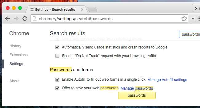 Du bør også sikre, at Chrome er indstillet til at tilbyde at gemme dine adgangskoder. På Chromes indstillingsskærm skal du søge efter "adgangskoder" og sikre, at "Tilbyd at gemme dine webadgangskoder" er aktiveret under "Autofyld og formularer."