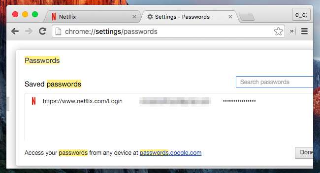 Du kan senere klikke på linket "Administrer adgangskoder" her eller gå til Chrome: // indstillinger / adgangskoder i Chrome for at få adgang til, administrere og se en liste over dine gemte adgangskoder.