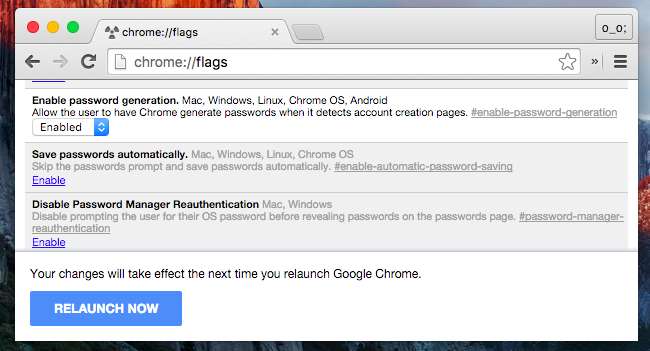 Du kan også ændre andre flag, der kan gøre adgangskodeadministratoren mere nyttig - for eksempel har webstedsudviklere mulighed for at markere bestemte adgangskodefelter med en "husk ikke" -mulighed, hvilket gør at Chrome ikke tilbyder at huske adgangskoden. Der er et "Aktiver kraftbesparelse af adgangskoder" -flag, der får Chrome til at ignorere dette, så det kan huske enhver adgangskode.