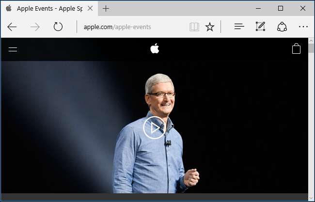 Med lanceringen af Windows 10 blev Apple-begivenheder meget lettere at streame på Windows. Hvis du kører Windows 10 og ikke kan få Apple-begivenheden til at fungere i Chrome eller Firefox, kan du bare starte den inkluderede Microsoft Edge-webbrowser, gå til Apples websted , og start med at se - ligesom du ville i Safari på en Apple-platform.