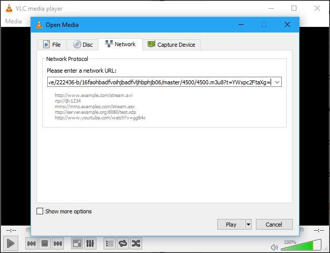 BEMÆRK: Din kilometertal kan variere med dette trick. At se streamen ved hjælp af en officiel løsning fungerer normalt bedre, selvom VLC tidligere har fungeret anstændigt godt for os.