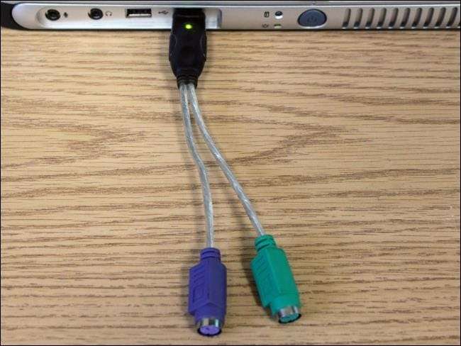 Hvis du er bekymret for hardware-keyloggers, skal du bare kontrollere bagsiden af din computer og sikre dig, at der ikke er nogen mistænkelig enhed mellem dit tastaturkabel og selve computeren - selvfølgelig vil det sandsynligvis ikke være. (Og hvis der er, er det sandsynligvis en slags legitim adapter som den nedenfor.)
