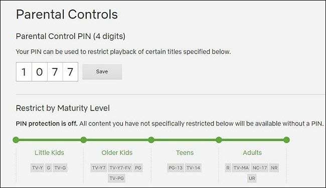 Den virkelige forældrekontrolfunktion er PIN-systemet, som Netflix kalder "hårde kontroller". Hvis du indstiller en PIN-kode på din konto, kan du indstille, at Netflix kræver det, før du afspiller modent indhold i en hvilken som helst profil.