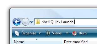 For at sætte det tilbage i mappen Quick Launch skal du åbne explorer og derefter indtaste følgende i adresselinjen: