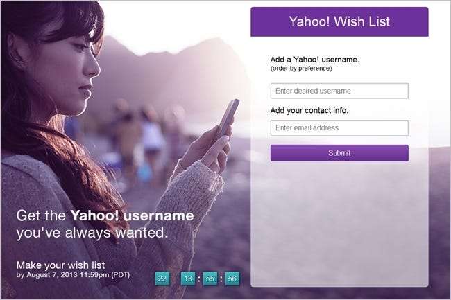 Hvis du er en af de mennesker, der har glædet sig til at have et bedre brugernavn til en Yahoo-konto, er det nu tid til at skynde dig videre til ønskelistewebstedet og registrere dine foretrukne valg.