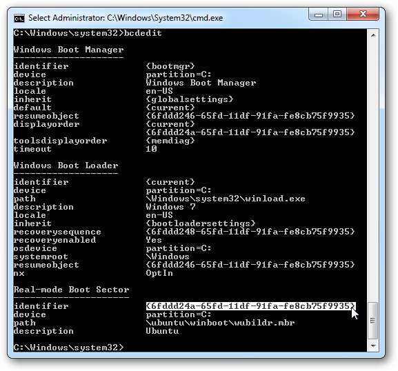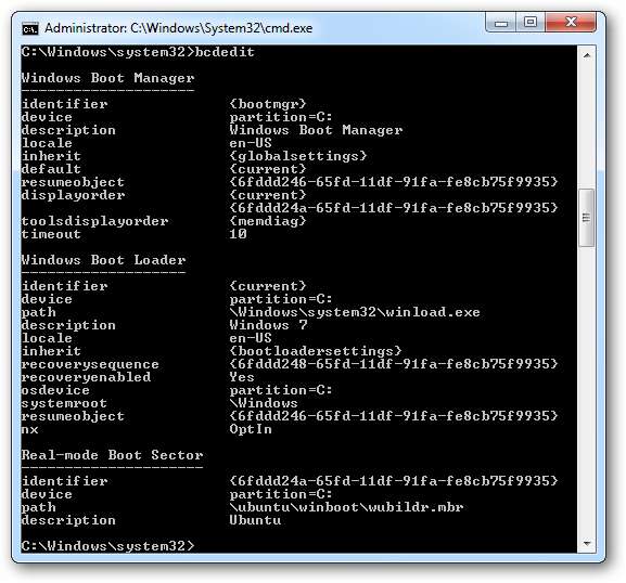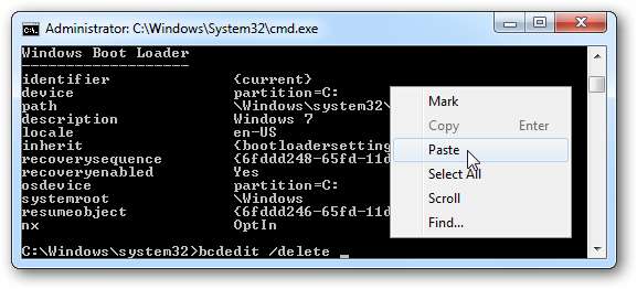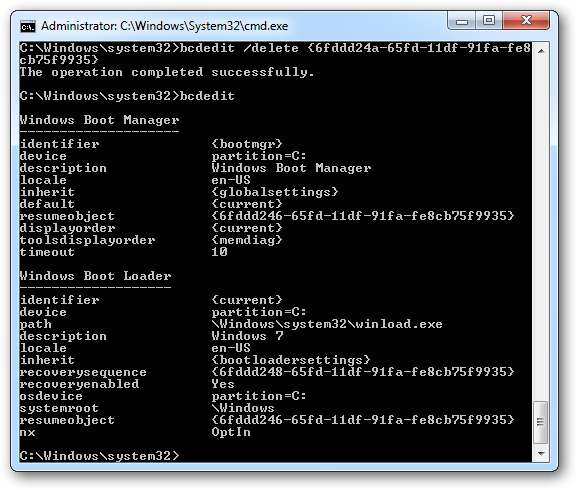 Indtaste bcdedit igen for at bekræfte, at den krænkende post nu er væk fra listen.