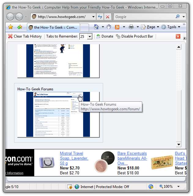 Heldigvis er der en tilføjelse til IE7 kaldet "IE7 Åbn sidst lukket fane", som husker, hvilke faner du for nylig har lukket, så du hurtigt kan åbne dem igen.