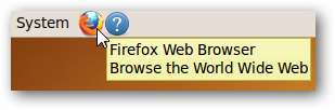 Når Ubuntu 9.10 er startet op, skal du åbne Firefox ved at klikke på ikonet i toppanelet.