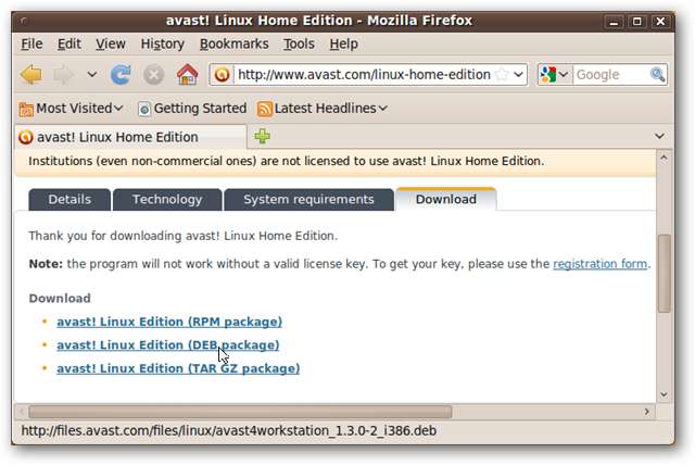Klik på fanen Download, og klik derefter på linket for at downloade DEB-pakken.