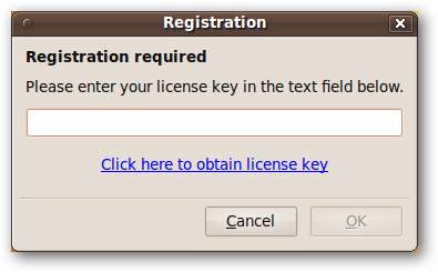 Du vil først blive mødt med et vindue, der beder om din licensnøgle. Forhåbentlig har du modtaget det i din e-mail nu; åbn den e-mail, der er fantastisk! sender dig, kopier licensnøglen og indsæt den i registreringsvinduet.