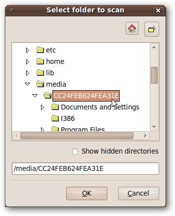 Hvis du vil scanne en bestemt mappe, kan du gå længere ind i dette hierarki og vælge den mappe. Vi scanner dog hele harddisken, så vi skal bare trykke på OK.