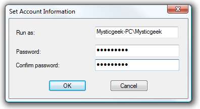 Når du har konfigureret alle oplysningerne, bliver du bedt om at indtaste brugernavnet og adgangskoden til din pc. Når du er færdig, skal du gå videre og klikke på OK, og alt er indstillet. En ting at huske på er, at blanke adgangskoder ikke accepteres.