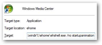 % windir% \ ehome \ ehshell.exe / nostartupanimation