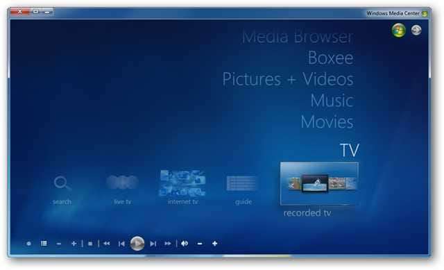 Hvis du vil dykke ned i dine optagede tv-shows lige uden for flagermusen, åbner denne switch Media Center i dit optagede tv-bibliotek i fuldskærmstilstand.