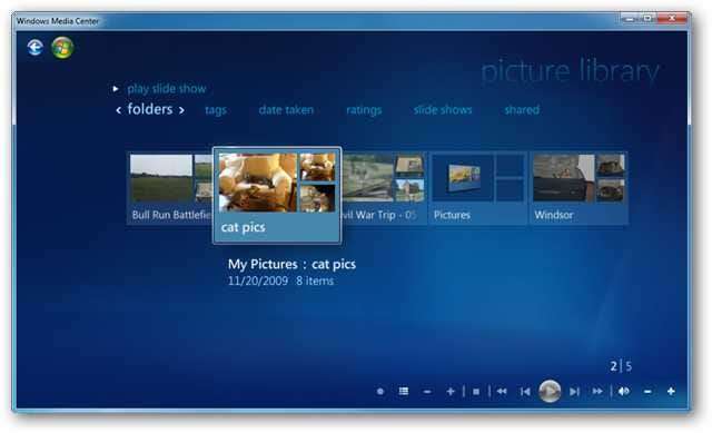 Hvis billeder er mere dine ting, så prøv at åbne Media Center i billedbiblioteket i fuldskærmstilstand.