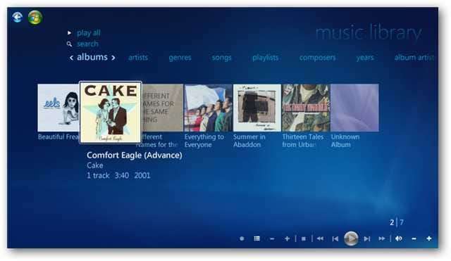 Hvis du bruger Windows Media Center mere til musik end video eller tv, kan du prøve denne kontakt til størrelse. Det åbner Media Center i musikbiblioteket i fuldskærmstilstand.