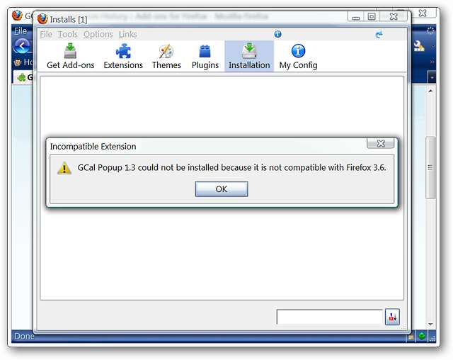 Til vores eksempel valgte vi en fantastisk udvidelse, som desværre endnu ikke er opdateret. Som du kan se her, nægter Firefox at lade udvidelsen installeres.