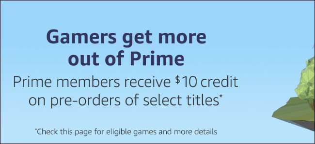 Mens Amazons 20% rabat på fysiske spilforudbestillinger forsvinder, planlægger Amazon stadig at tilbyde en $ 10 Amazon-kredit når du forudbestiller "vælg spil". Kun Prime-medlemmer kan modtage denne kredit, og det er godt for "næsten alt, der sælges på Amazon.com", inklusive andre videospil. Vi ved ikke, hvor mange spil der er berettiget til denne kredit