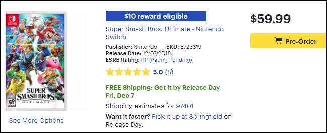 Selvom du har Amazon Prime, er det også værd at tjekke Best Buy's hjemmeside. Best Buy tilbyder muligvis en forudbestilling på $ 10 på spil, som Amazon ikke gør. Eller Amazon tilbyder muligvis en kredit på $ 10 på spil, som Best Buy ikke gør. Vi ved ikke, hvordan Amazon planlægger at køre dette rabatprogram, så vi ved ikke, hvor meget de overlapper hinanden.