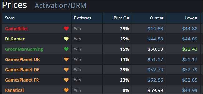 For eksempel, Hitman 2 koster $ 60 at forudbestille på Steam, men du kan forudbestille en Steam-kode til 25% rabat på et par konkurrerende websteder og kun betale $ 45. Du får det samme produkt på begge måder - den eneste forskel er, at du ikke kan tilbagebetale spillet, hvis du ikke kan lide det.