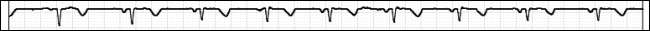 Den normale funktion af denne cyklus er kendt som sinusrytme, og du kan se den i EKG-strimlen nedenfor. (Ifølge patienten, der leverede disse strimler, er denne strimmel faktisk også på hovedet på grund af en tilstand kaldet a Højre bundgren .)